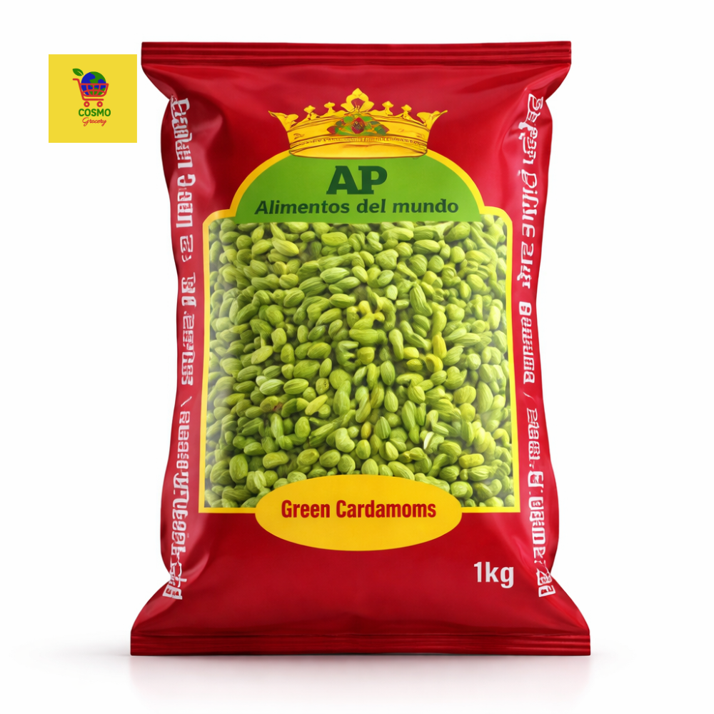 AP Especias Cardamomo Verde 1 kg, AP Especias Green Cardamom 1kg is a high-quality bulk spice known for its intense aroma and rich, sweet flavor. These whole green cardamom pods are carefully selected to ensure freshness and superior quality. Perfect for preparing tea, desserts, curries, and baked goods, this 1kg pack is ideal for regular use in homes, restaurants, and catering businesses. Widely available in Spain and across Europe, it delivers an authentic taste of premium spices. The secure packaging helps maintain freshness, ensuring long-lasting flavor and quality.