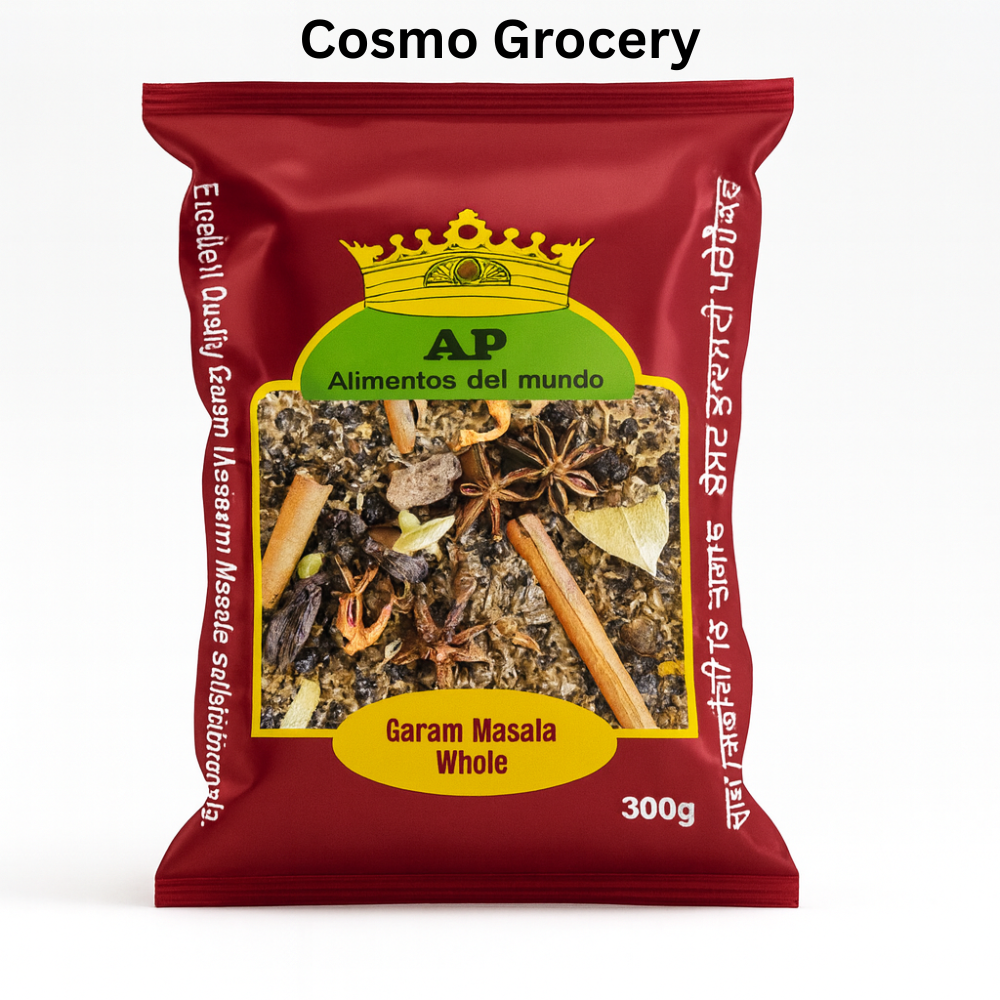 Experience rich aroma and authentic flavor with AP Whole Garam Masala, a premium blend of carefully selected whole spices in Cosmo Grocery. This 300g pack includes cinnamon, star anise, cardamom, cloves, bay leaf, and other traditional spices that elevate the taste of curries, biryanis, soups, and marinades.
