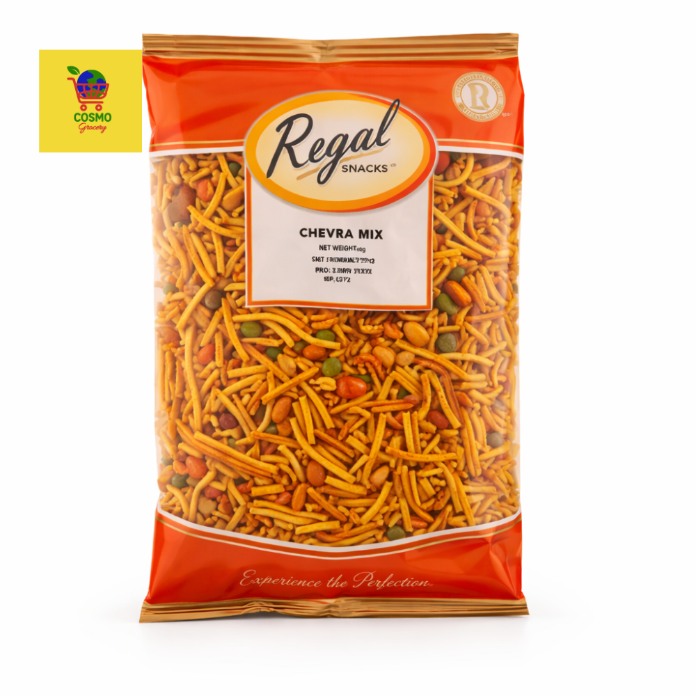 Regal Nimko Chevda Mix 400g is a delicious and crunchy traditional Indian namkeen snack made with a flavorful blend of fried lentils, peanuts, chickpea noodles, and aromatic spices. This classic chevda mix delivers the perfect balance of spicy, salty, and crunchy flavors in every bite.